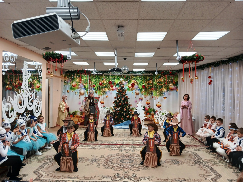 Вот он и пришёл в группу «Росинка» этот долгожданный всеми любимый праздник. Этот день стал настоящим праздником волшебства и чудес! Ведь на праздник при летел Снежный Вихрь и похитил Дедушку Мороза. Чтобы спасти зимнего волшебника из плена, ребятам пришлось отправиться в долгое путешествие. Встретились им на пути и ковбои, и северные олени, и звёздочки, и сама Снежная Королева. Ребята справились со всеми трудностями и зажгли Пламя Добра. Случилось волшебство – и на праздник пришел Дед Мороз. А помогали ребятам Баба Яга и Старик Хоттабыч.